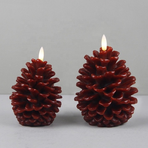 3Dリアルフレームで動作するクリスマスの新しいブルゴーニュパラフィンワックスパインコーン電気キャンドルバッテリー