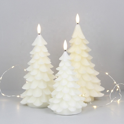 3Dリアルフレーム付きリアルワックスアイボリーバッテリー駆動クリスマスツリーフレームレスキャンドルセット3個セット