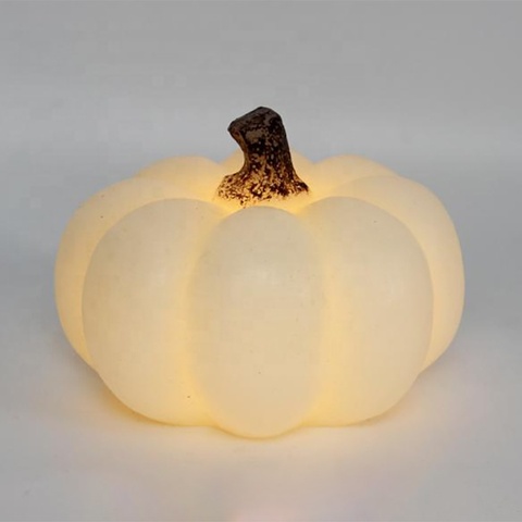 Vela LED de batería parpadeante blanca cálida de cera marfil de calabaza redonda para decoración de Halloween