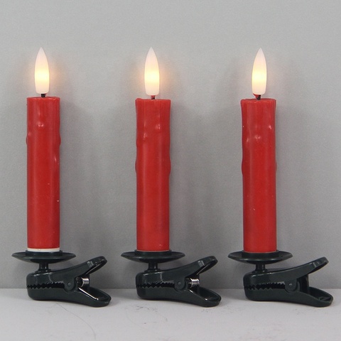 Venta al por mayor de aspecto real rojo alimentado por batería de control remoto cónico árbol de Navidad velas LED sin llama con Clips de árbol
