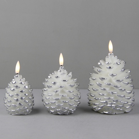 Decoración para el hogar 3D llama real piña cera blanca LED velas sin llama parpadeante con control remoto